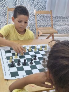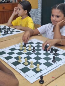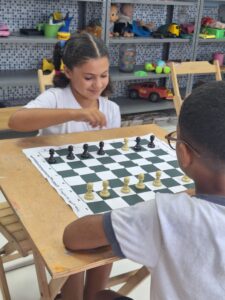Na foto, a pequena **Selena Spuza** dá seus primeiros passos no tabuleiro, descobrindo o fascinante mundo do xadrez! 👧♟️